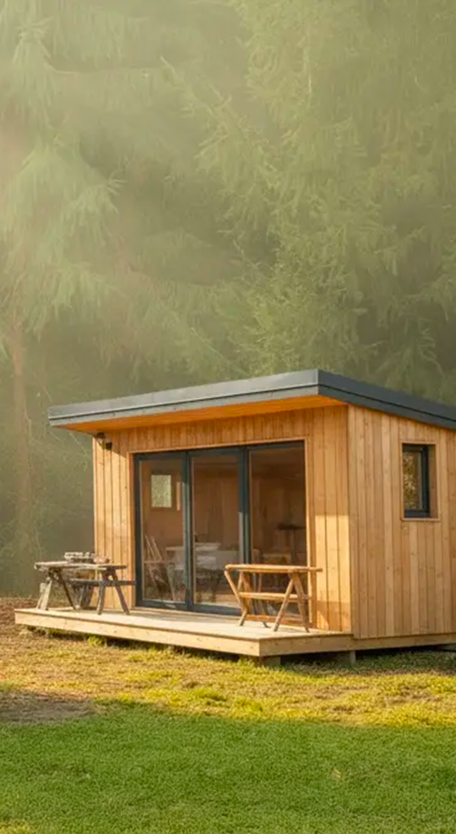 Je construis des lodges en ossature bois sur mesure, des espaces habitables élégants et durables, pensés pour offrir confort, isolation et esthétique naturelle que ce soit pour un hébergement, un bureau ou une extension de vie.