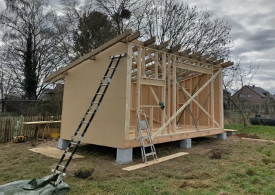 La rapidité est l’un des grands atouts de l’ossature bois. Selon la taille du projet, une cabane ou une extension peut être hors d’eau/hors d’air en quelques semaines seulement, réduisant considérablement les délais par rapport à une construction traditionnelle.